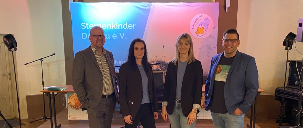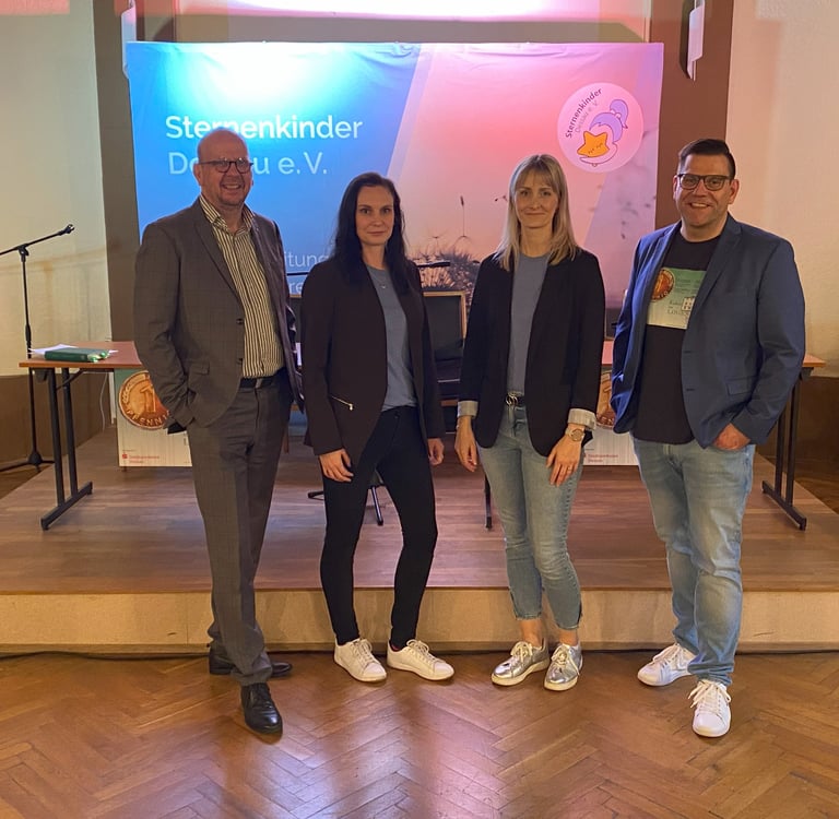 Ohne Ihren Besuch der Veranstaltungen sowie Ihren großzügigen Spenden wäre dies nicht möglich gewesen. Herzlichen Dank dafür. Unser Dank geht auch an alle Kunstschaffenden - ohne ihre Kunst sowie der Verzicht auf Gagen könnten wir das Format nicht in der Form umsetzen (im Bild v.l.n.r.: Uwe Dorand (KiLH); Tina Henze, Veronika Olejnicki (Sternenkinder e.V.); Frank Richter (KiLH))